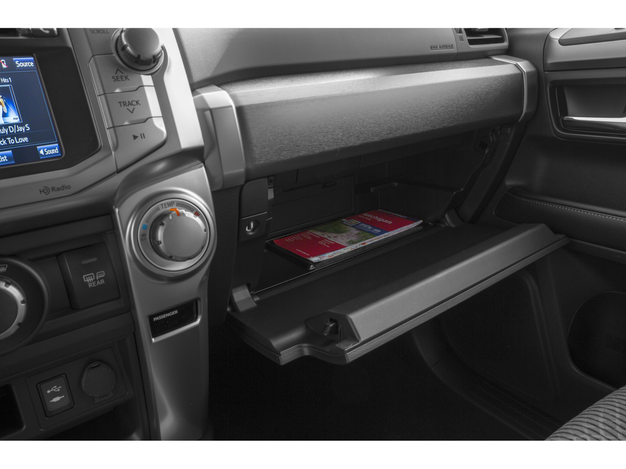 RADIO: ENTUNE PREMIUM AUDIO WITH NAVIGATION App Suite, Multimedia Bundle (6.1-in, high resolution touch-screen w/split screen display, AM/FM CD player, 8 speakers, auxiliary audio jack, USB 2.0 port w/iPod connectivity and control, advanced voice recognition, hands-free phone capability, phone book access and music streaming via Bluetooth® wireless technology), HD radio, HD predictive traffic and Doppler weather overlay, AM/FM cache radio, Sirius XM All Access Radio and Gracenotes album cover art, Entune App Suite includes Bing, Facebook Places, iHeartRadio, MovieTickets.com, OpenTable, Pandora and Yelp; real-time info including traffic, weather, fuel prices, sports and stocks, Access to Entune services is complimentary for three years, See toyota.com/entune, 4x4, Trailer Hitch, Aluminum Wheels Non-Smoker vehicle, Rare