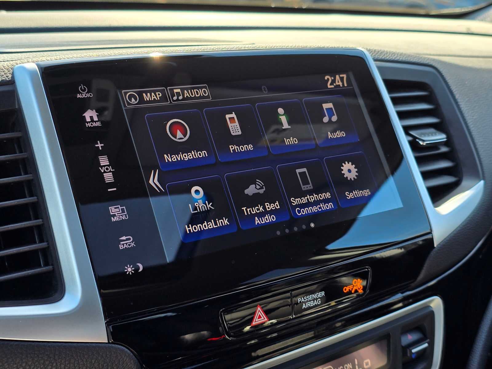 - Radio: AM/FM/MP3 w/Nav System & Truck-Bed Audio -inc: 540-watt premium audio system, 8" display audio w/high-resolution electrostatic touch-screen and customizable feature settings, 8 speakers including subwoofer, Bluetooth® streaming audio, auxiliary input jack, Radio Data System (RDS), speed-sensitive volume compensation (SVC), Apple CarPlay, Android Auto, HondaLink, SMS text message function, 1.5-amp USB smartphone/audio interface, 2.5-amp USB charging port and HD Radio