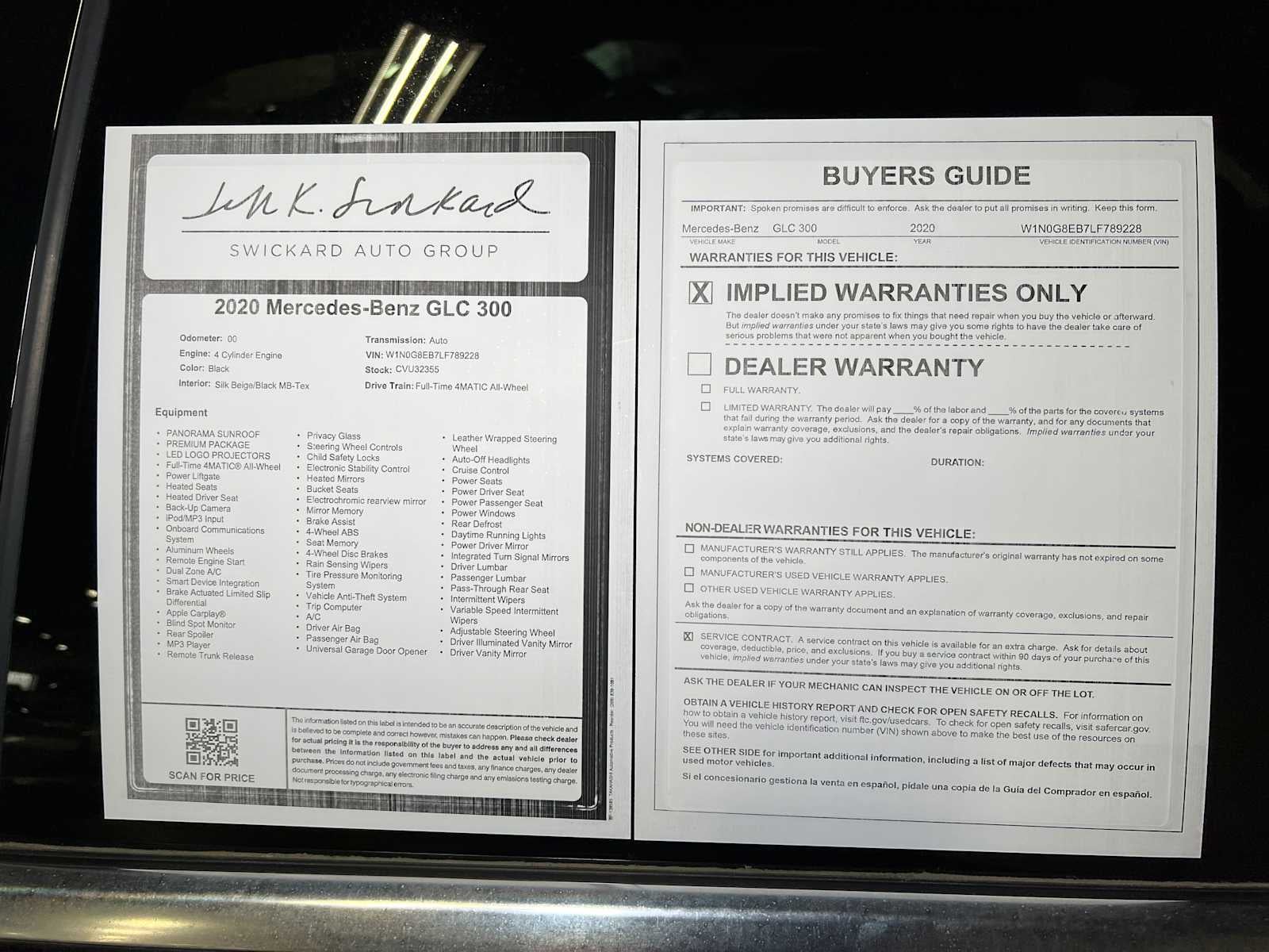 Full-Time 4MATIC® All-Wheel, Power Liftgate, Heated Driver Seat, Back-Up Camera, iPod/MP3 Input. CARFAX 1-Owner. Black exterior and Silk Beige/Black MB-Tex interior, GLC 300 trim. EPA 28 MPG Hwy/21 MPG City! Heated Seats, Sunroof, PREMIUM PACKAGE, LED LOGO PROJECTORS, PANORAMA SUNROOF, Alloy Wheels. Mercedes-Benz GLC 300 with Black exterior and Silk Beige/Black MB-Tex interior features a 4 Cylinder Engine with 255 HP at 5800 RPM*.