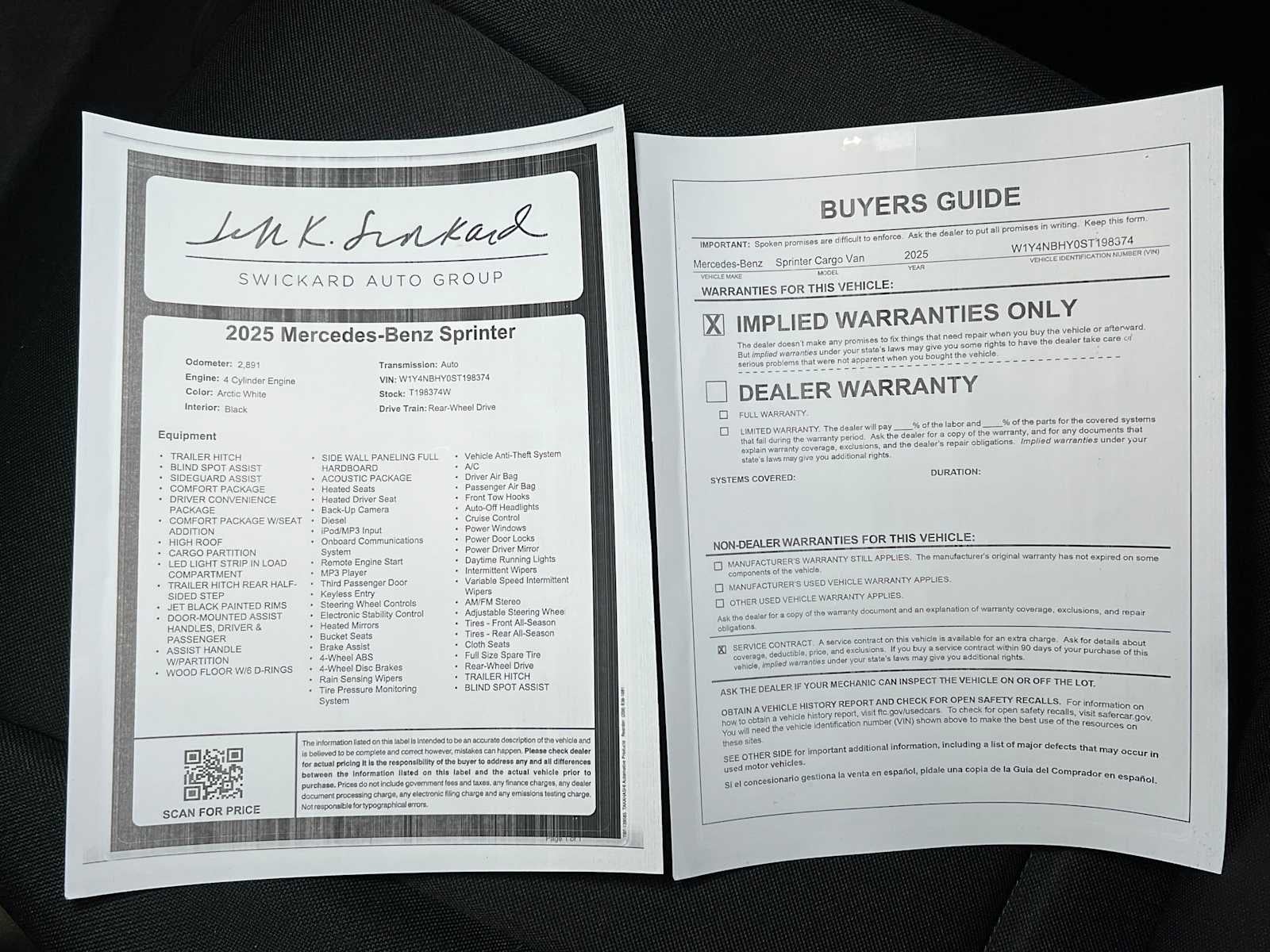- Vehicle Name: Mercedes-Benz Sprinter Cargo Van