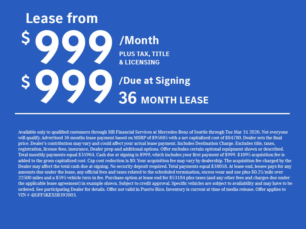 AMG® LINE EXTERIOR: AMG® Rear Apron, black diffuser-look insert and chrome trim strip, AMG® Side Skirts in Body Color, Large Front Brake System, larger brake discs at the front axle, AMG® Brushed Stainless Steel Sports Pedals, black rubber studs, AMG® Floor Mats, AMG® Sport 3-Twin-Spoke Steering Wheel, flattened bottom, embossed nappa leather, silver chrome shift paddles, gloss black and silver spokes and touch control panels, Front and Rear Flared Wheel Arches in Body Color, AMG® Bodystyling, AMG® front apron w/air outlets in the wheel arch linings, ILLUMINATED RUNNING BOARDS, TRAILER HITCH: increased towing capacity, HEATED STEERING WHEEL, Third Row Seat, Navigation, Sunroof, Panoramic Roof, Full-Time 4MATIC® All-Wheel SPC Exchange Privilege for 7 days or 500 miles, whichever comes first, Each Certified vehicle must pass a rigorous inspection of over 165 points, 24-Hour Roadside Assistance includes trip routing, trip interruption coverage and technical help, A network of over 300 Mercedes-Benz dealers will support your Certified Mercedes-Benz, Carfax Vehicle History Report, Balance of New Car Warranty plus 1 year/unlimited miles extended Limited Warranty Welcome to Mercedes-Benz of Seattle, your local, family-owned Mercedes-Benz dealer near Bellevue, WA. We are proud to be part of the Seattle community and have called it home since 1957. At Mercedes-Benz of Seattle we are always looking for ways to give back and sponsor local schools and the rodeo. But we dont just serve Seattle. In fact, our customers visit us from Tacoma, Edmonds, Lynnwood, Kirkland and even Redmond, WA.